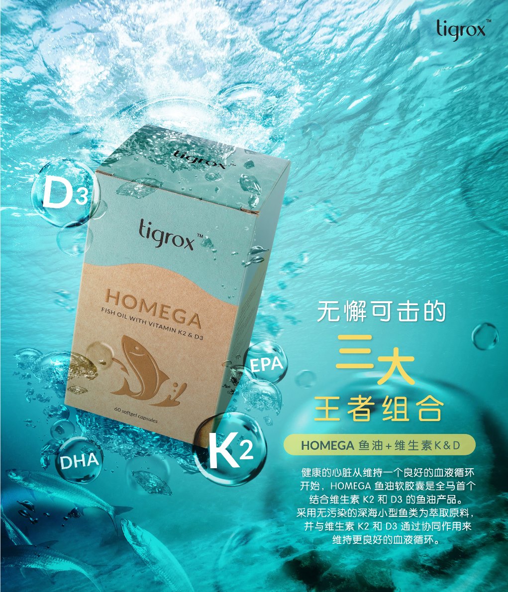 HOMEGA 鱼油软胶囊是全马首个结合维生素 K2 和 D3 的鱼油产品。它采用无污染的深海小型鱼类为萃取原料,并与维生素 K2 和 D3 通过协和作用来维持更良好的血液循环。Homega 适用于外食族,生活忙碌者,应酬族,以及40岁以上人士。