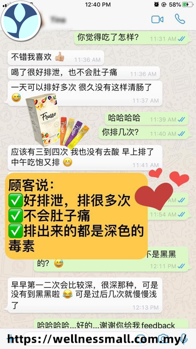 Dietary fibre will combine with stools which will then sweep away the stools in the intestinal wall and relieve constipation. Frusso contains prebiotics, necessary for the reproduction of probiotics which will reduce the growth of bad bacteria and maintain intestinal health.