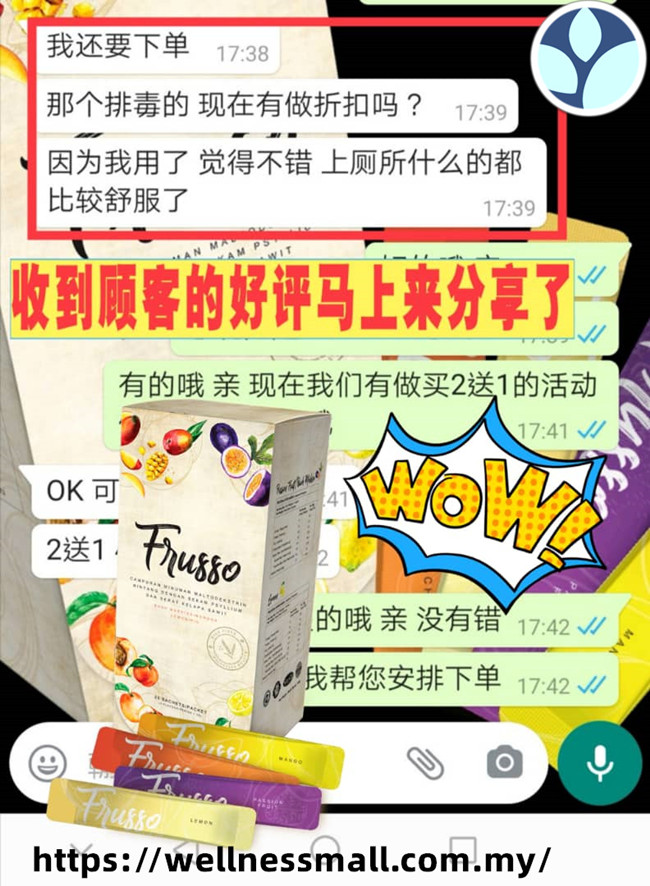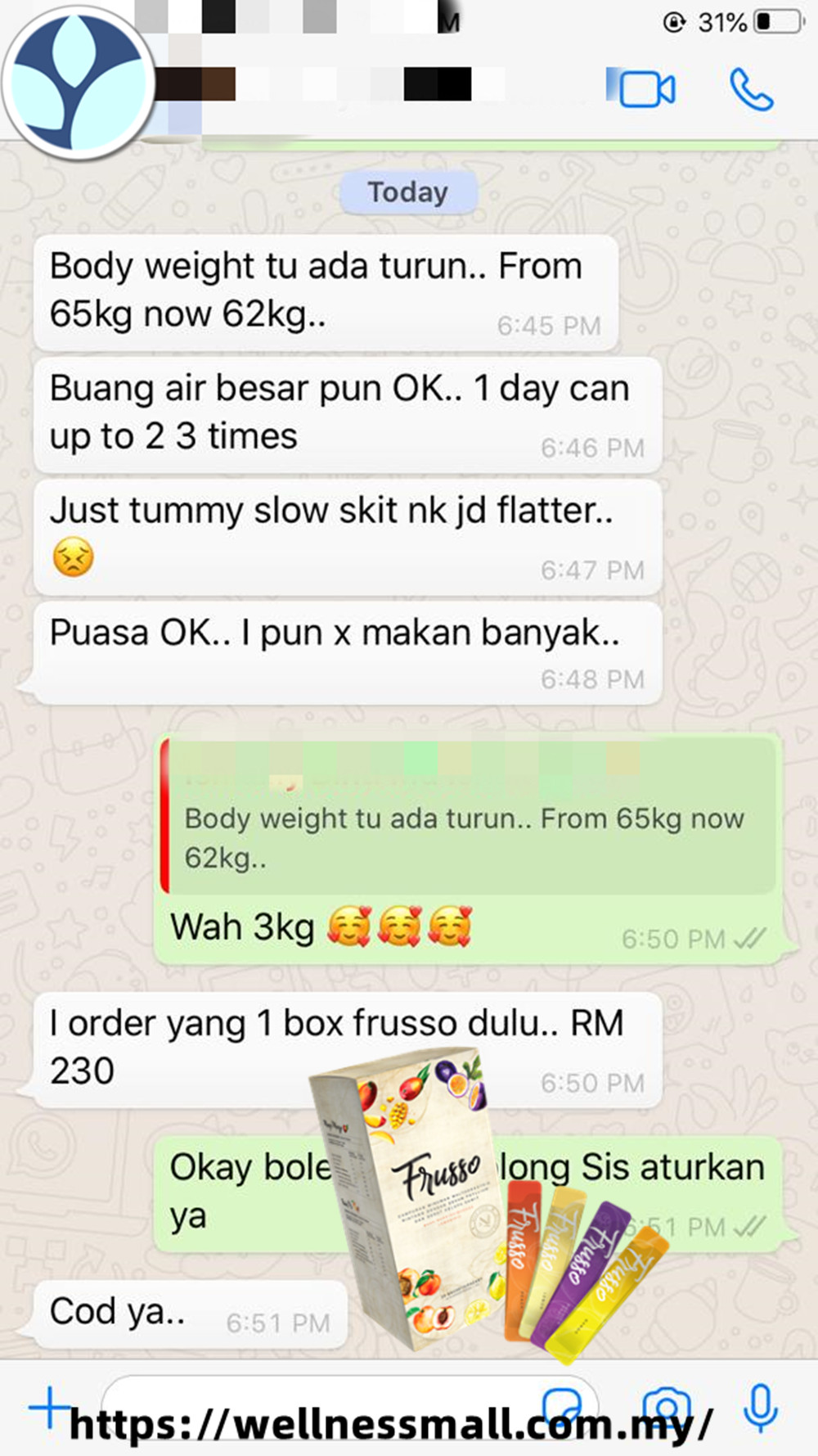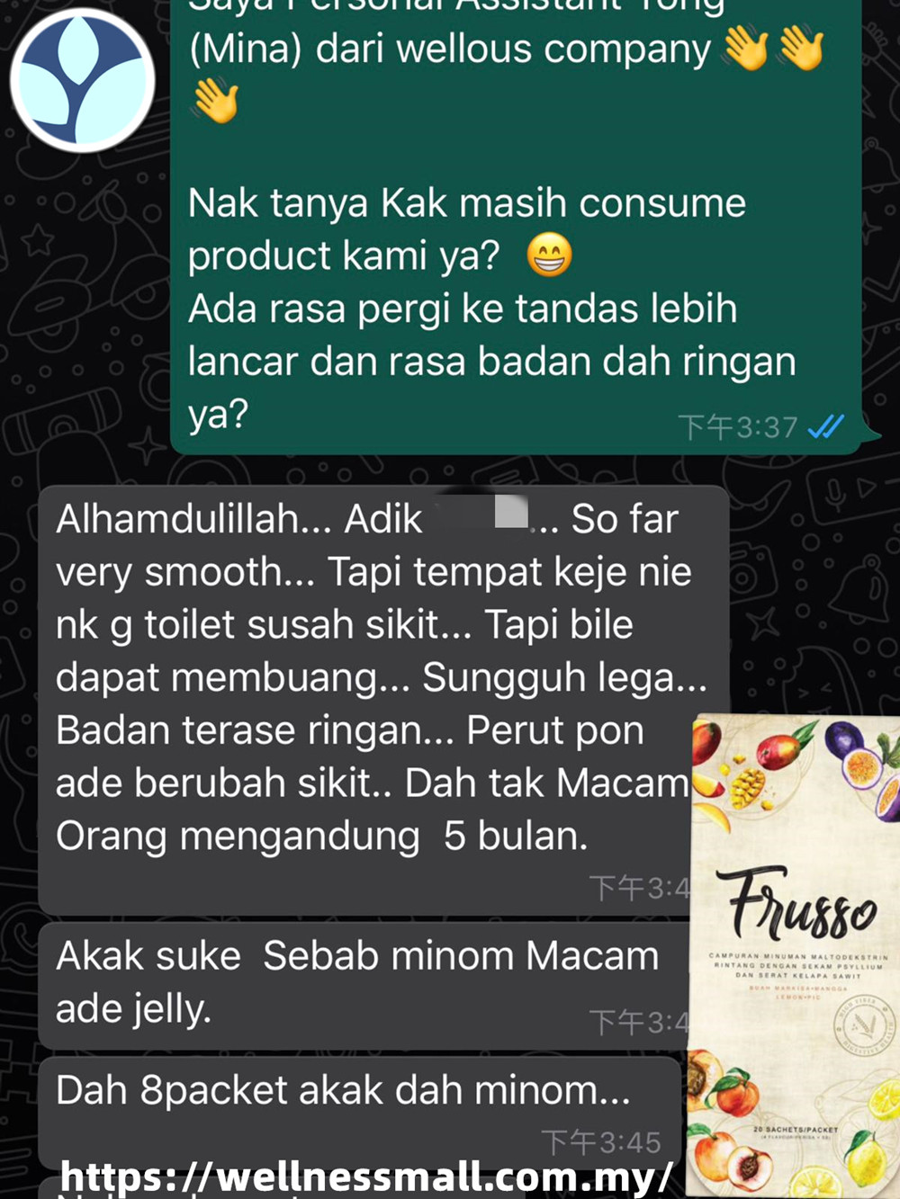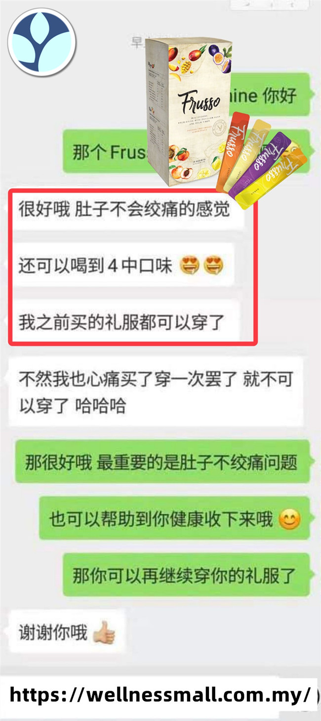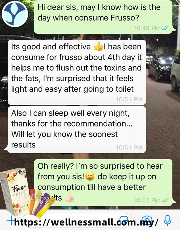 Frusso is loaded with both dietary fibres, water-soluble and water-insoluble. These two fibers possess their own function in which water-soluble fibre is viscous and able to absorb large amount of water, forming a gel when excreted whereas water-insoluble fibre functions to increase the volume and weight of faeces, promote gastrointestinal motility and bowel movements.