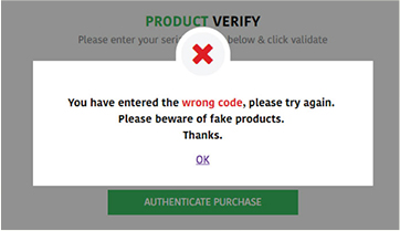 This message box will be appeared if your product is fake or if you have entered the invalid code