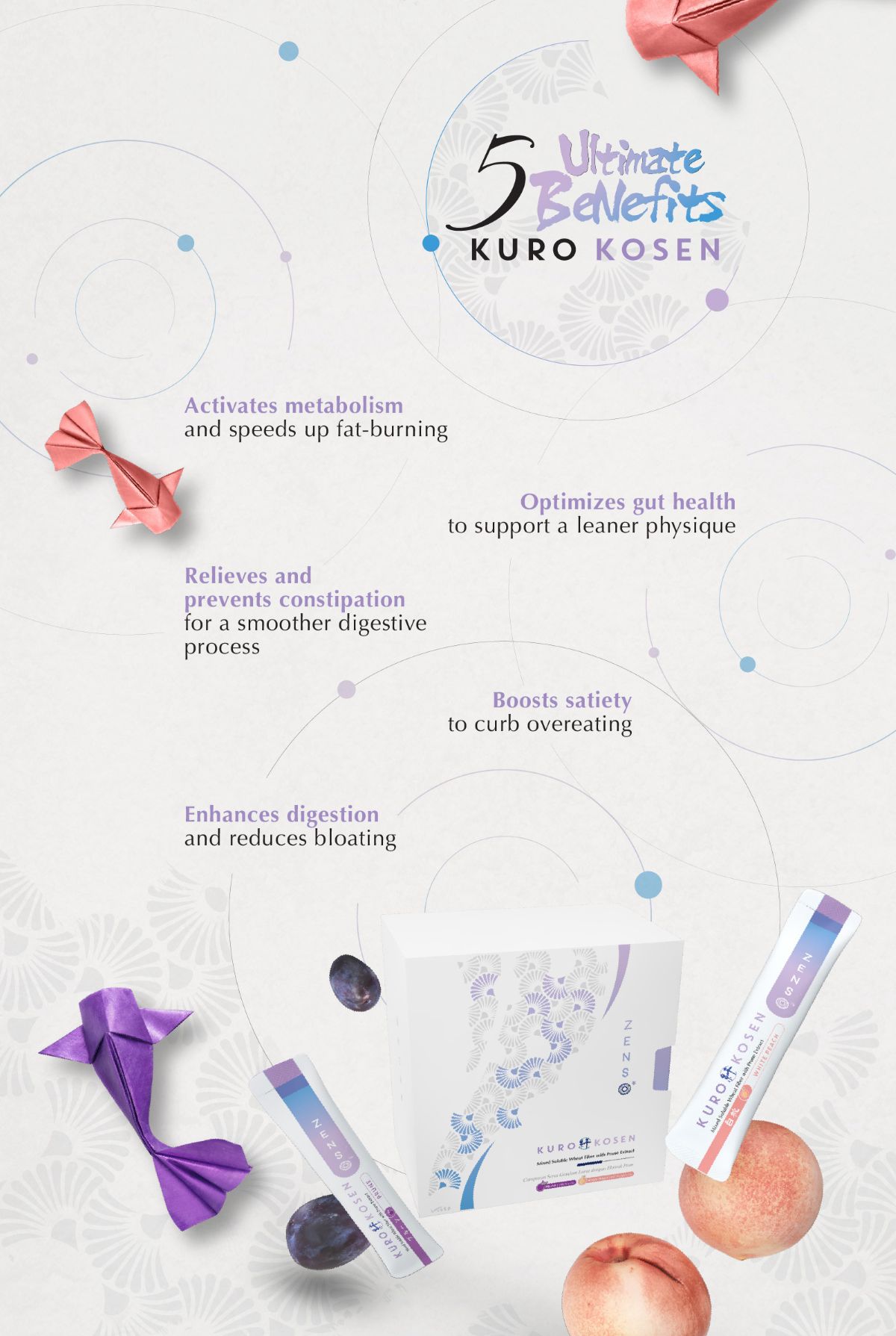 Mix 1 sachet of Kuro Kosen with 200ml of room temperature water, shake well and drink. Best time to drink: 30 minutes before meals. Especially recommended before social gatherings or big meals for better results.