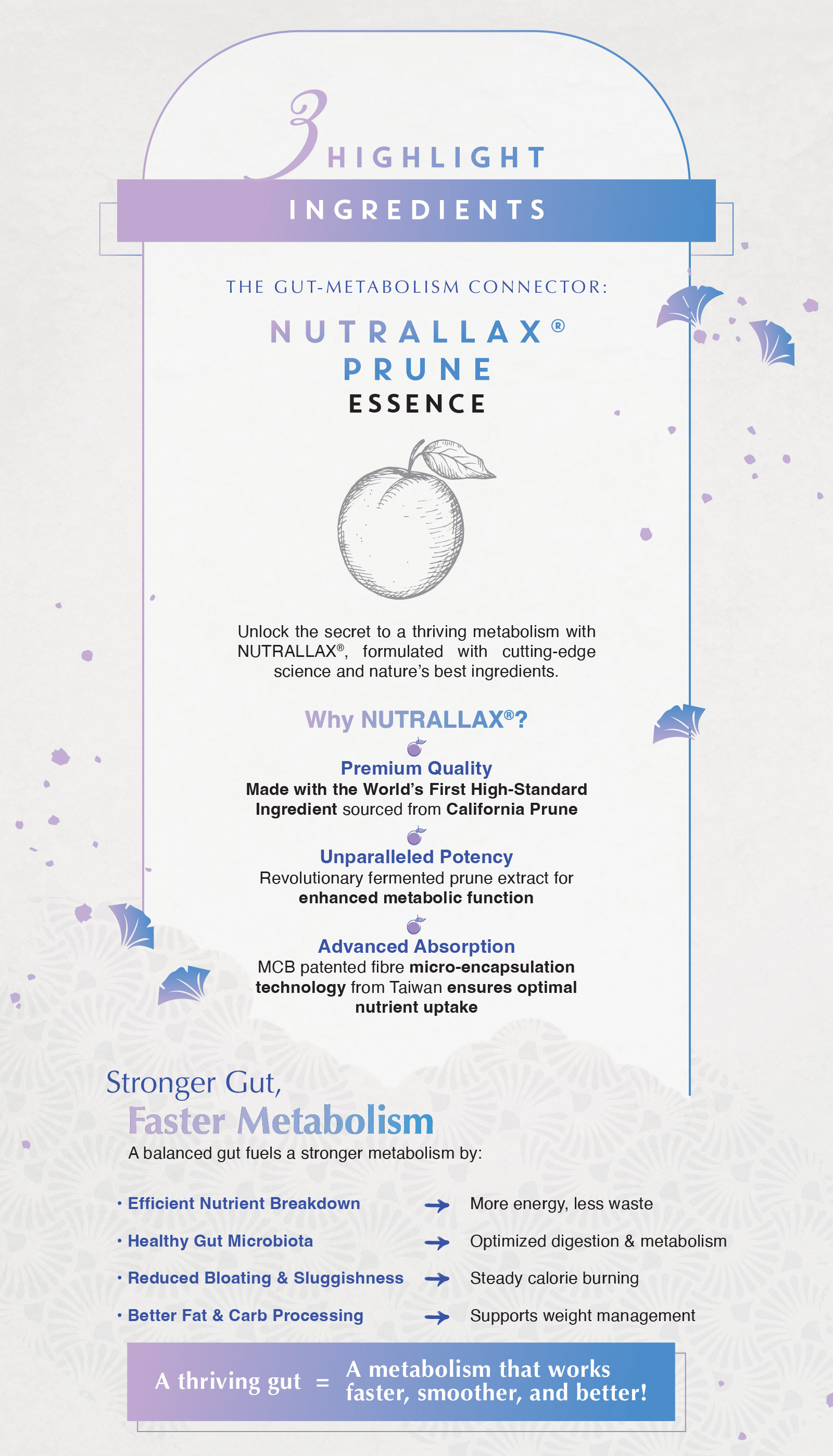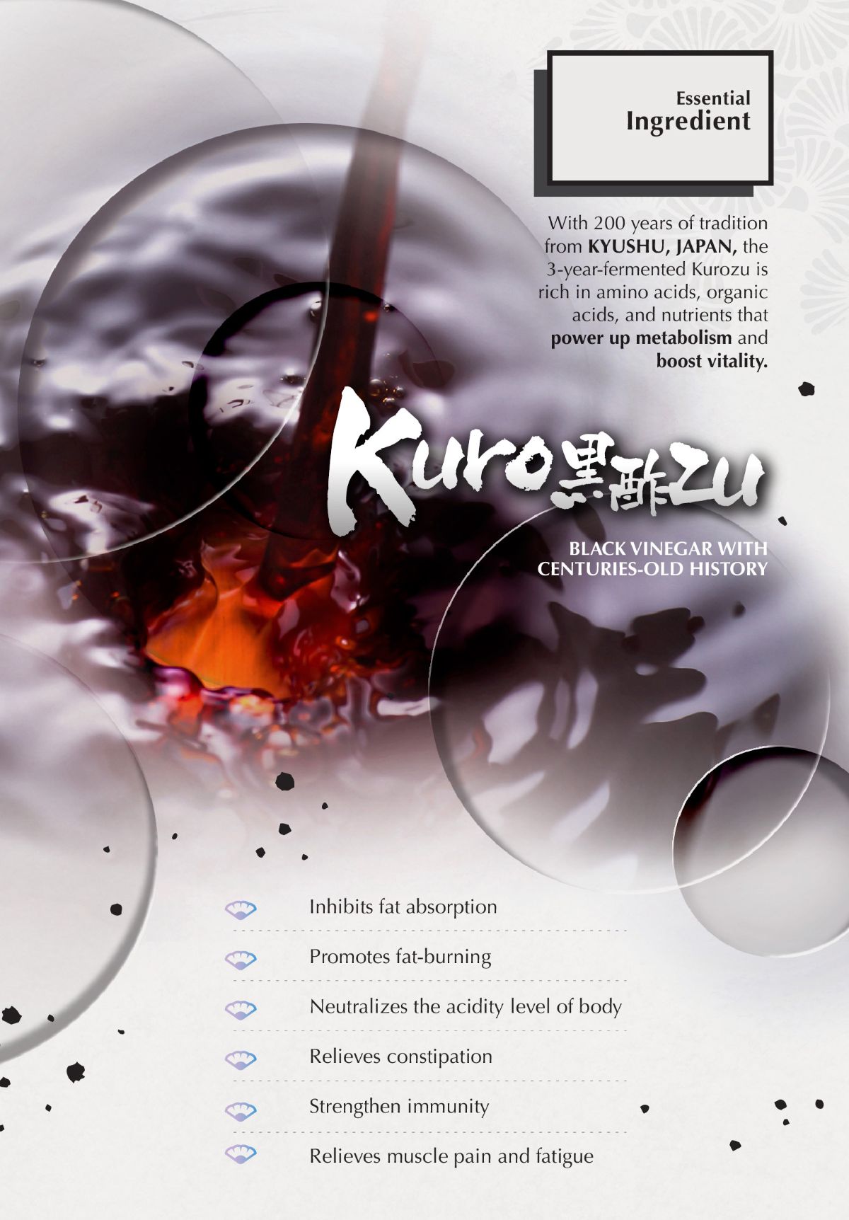 Japanese Black Vinegar (Kurozu), NUTRALLAX® Prune Extract, Black Tea Extract (Theaflavins & Thearubigins), Soluble Wheat Fiber