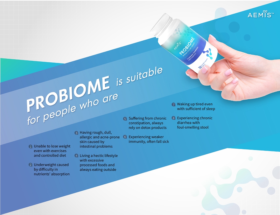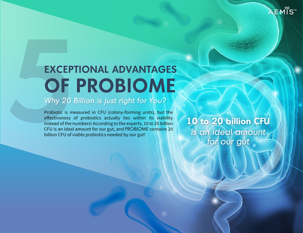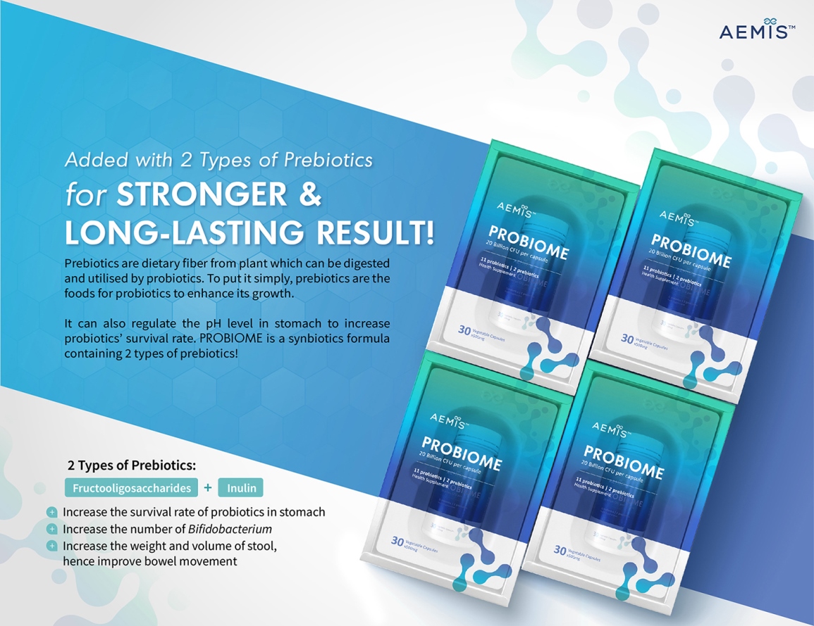 PROBIOME is a formula that contains 20 billion CFU of viable probiotics! Probiotics are good bacteria that naturally live in our gut. PROBIOME is combining 11 specially selected Probiotics strains and 2 types of prebiotics, there will be synergistic effects when both are consumed together, hence maximise the survival rate of probiotics. Probiome capsules can be stored in room temperature and need not to be refrigerated.